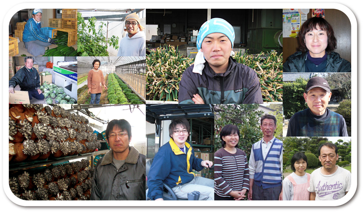 弊社は、従来の方法である「市場からの仕入れ」に頼らず、農家さんから産物を直接買い取ることにより、生産者さんの負担軽減に努めております。(年次生産計画と価格安定を図る。) また同時に、お客様にもっと新鮮なものをより安く提供できるというメリットも追求しております。